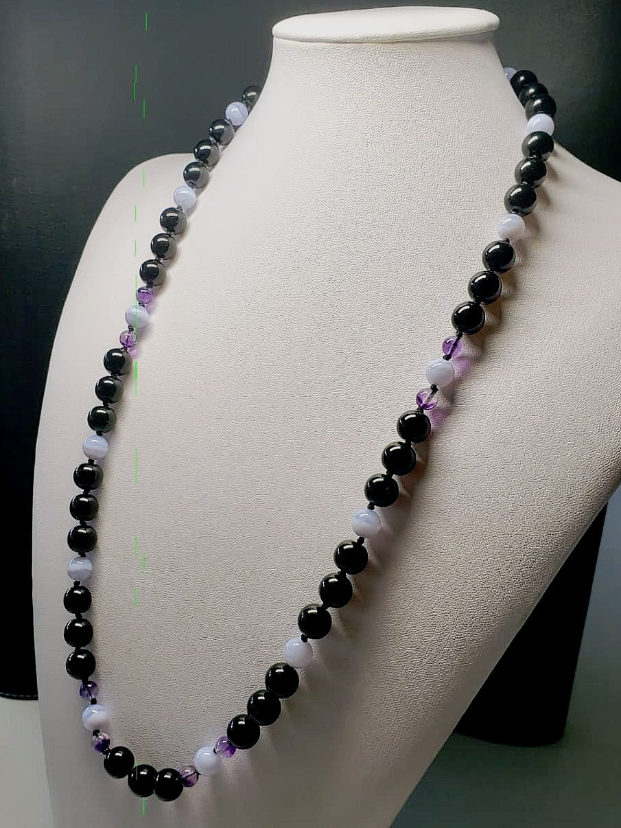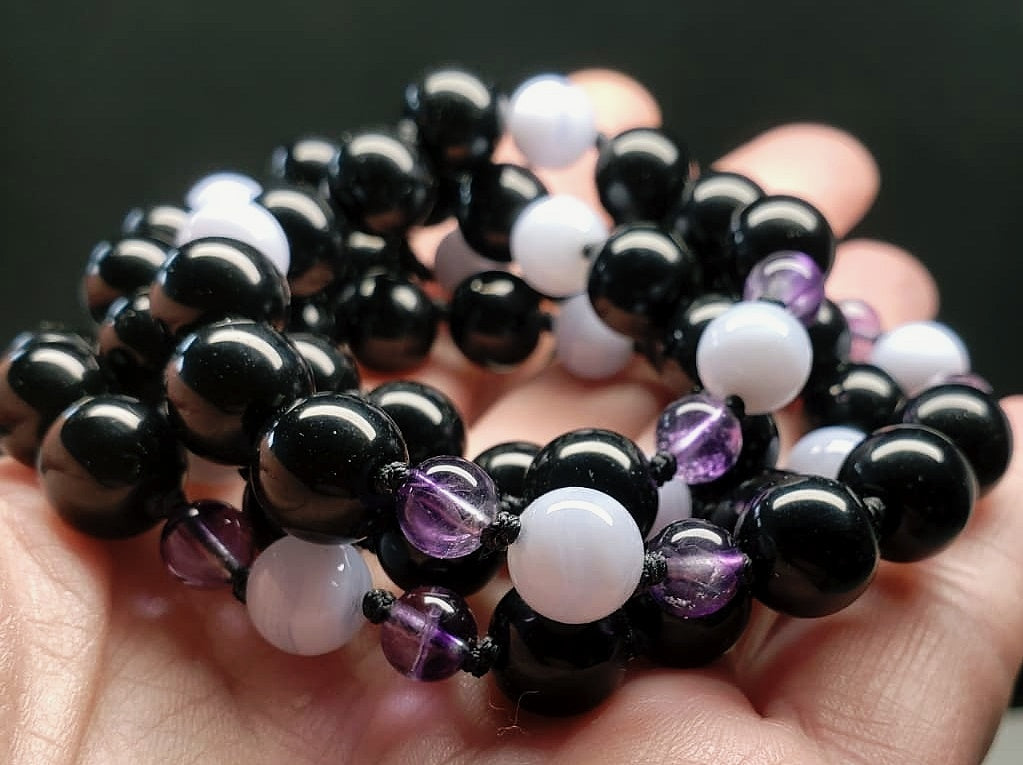 Blue Lace Agate with Purple Rainbow Fluorite & Black Onyx (Mental focus)