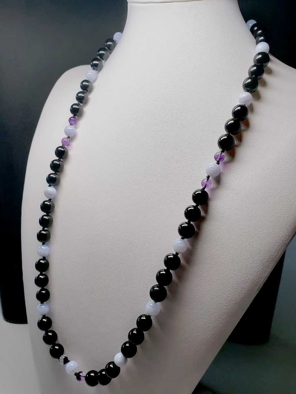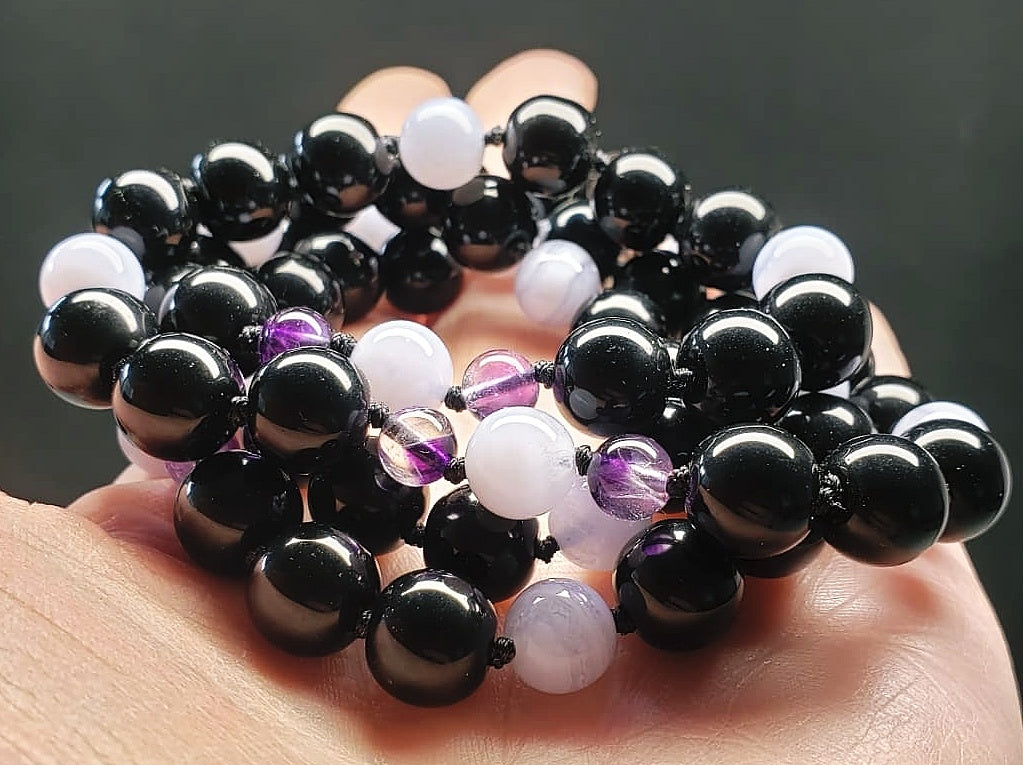 Blue Lace Agate with Purple Rainbow Fluorite & Black Onyx (Mental focus)