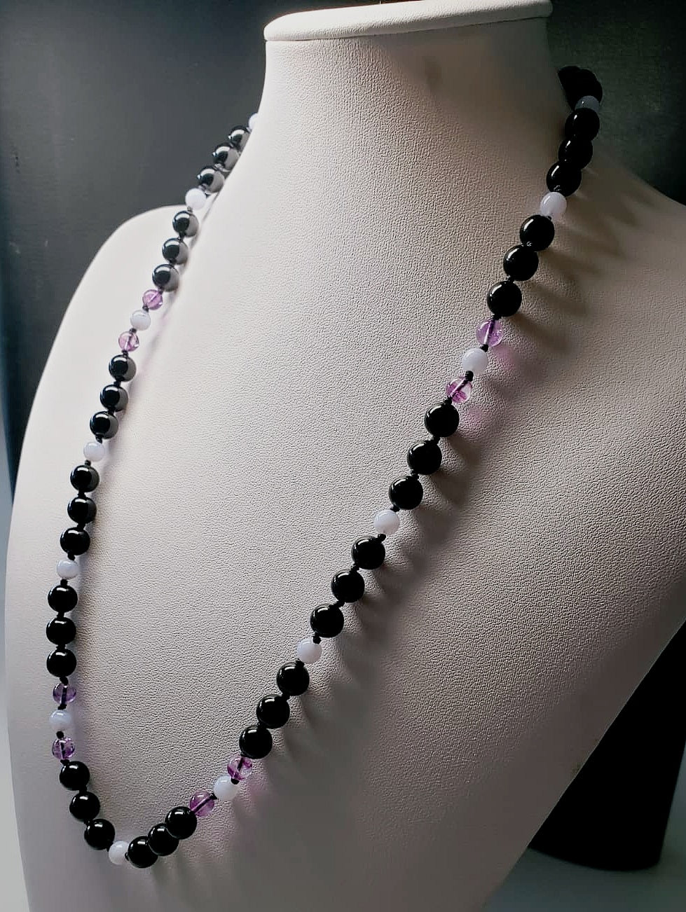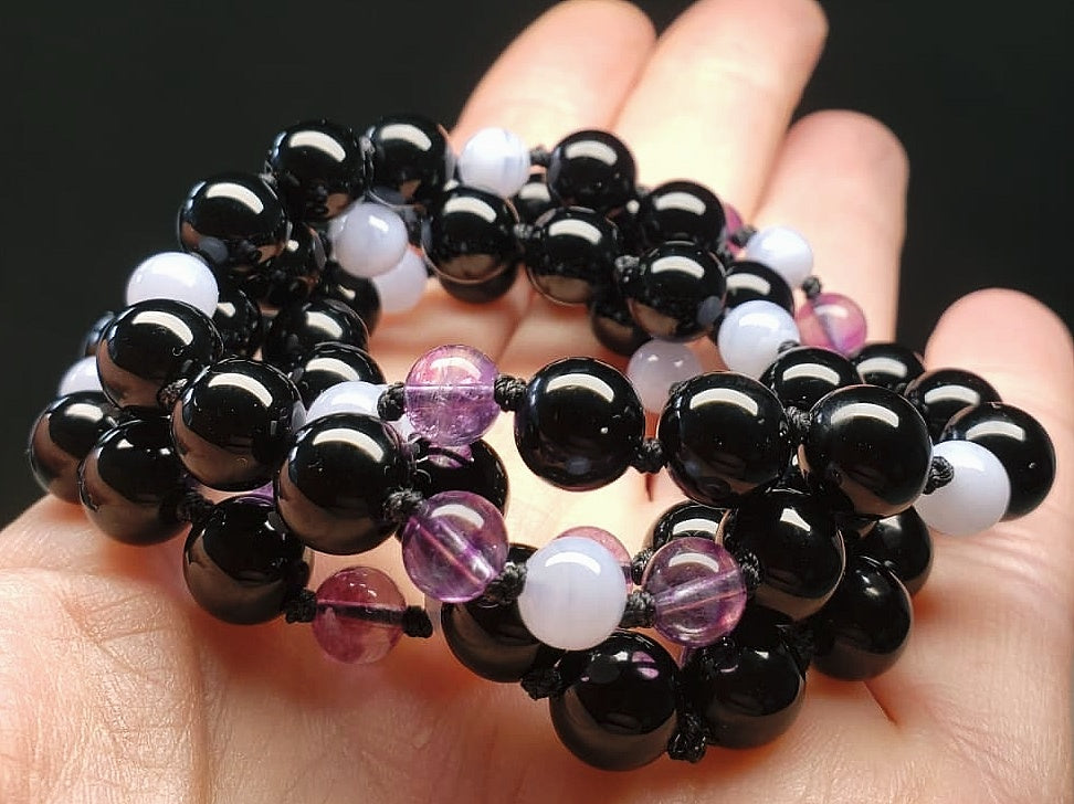 Blue Lace Agate with Purple Rainbow Fluorite & Black Onyx (Mental focus)