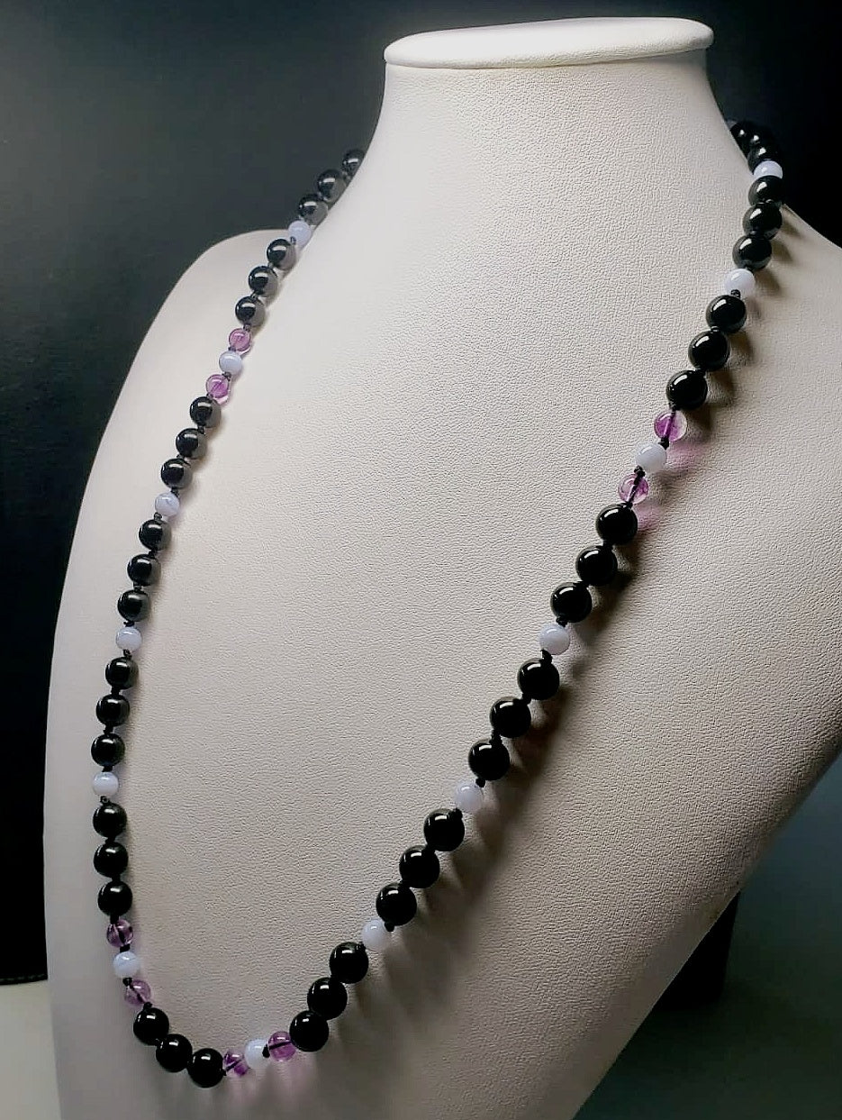 Blue Lace Agate with Purple Rainbow Fluorite & Black Onyx (Mental focus)