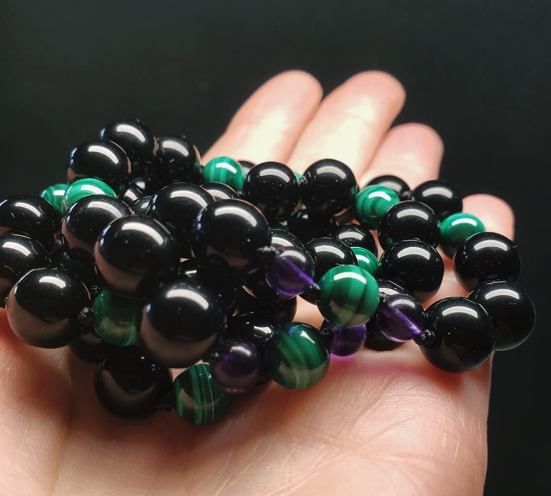 Malachite with Purple Rainbow Fluorite & Black Onyx (Physical focus)