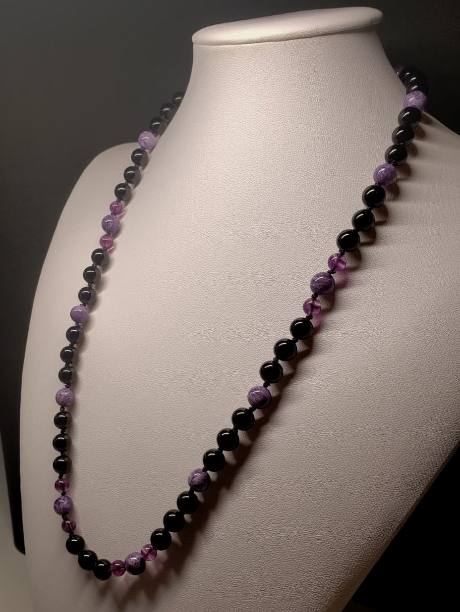 Charoite with Purple Rainbow Fluorite & Black Onyx (Spiritual focus)