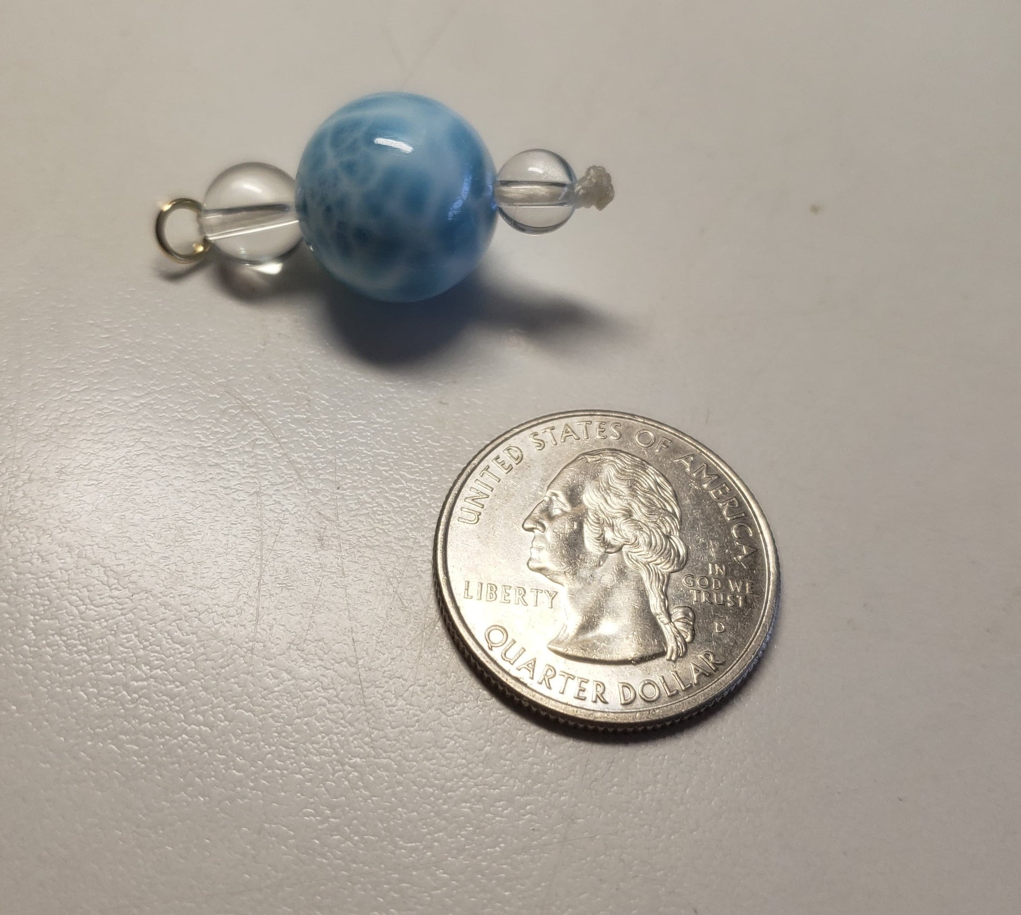 Pendant is shown next to a US quarter coin which is 24mm