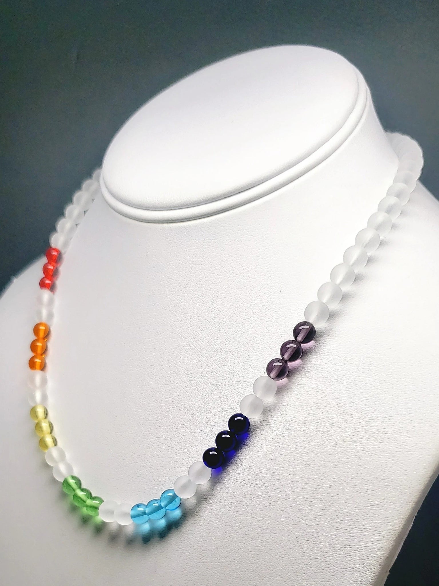 This necklace not only brings in the benefits of the individual colors, but also the vibration of the set intention of chakra balancing, harmonizing & healing.