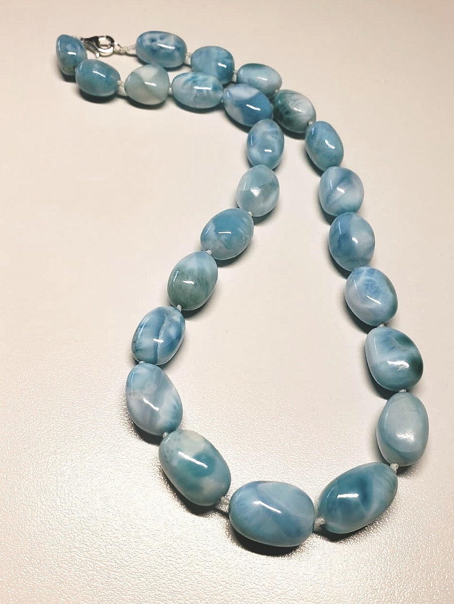 Larimar is experienced by most as a very calming and soothing gem (reduces stress). This is because it helps to shed the high maintenance self-created roles of life. It simply returns one to the center which is the aligned essence of heart and mind. This is where the peace lies within everyone and the more is able to function from this center, the more peace will be all over.