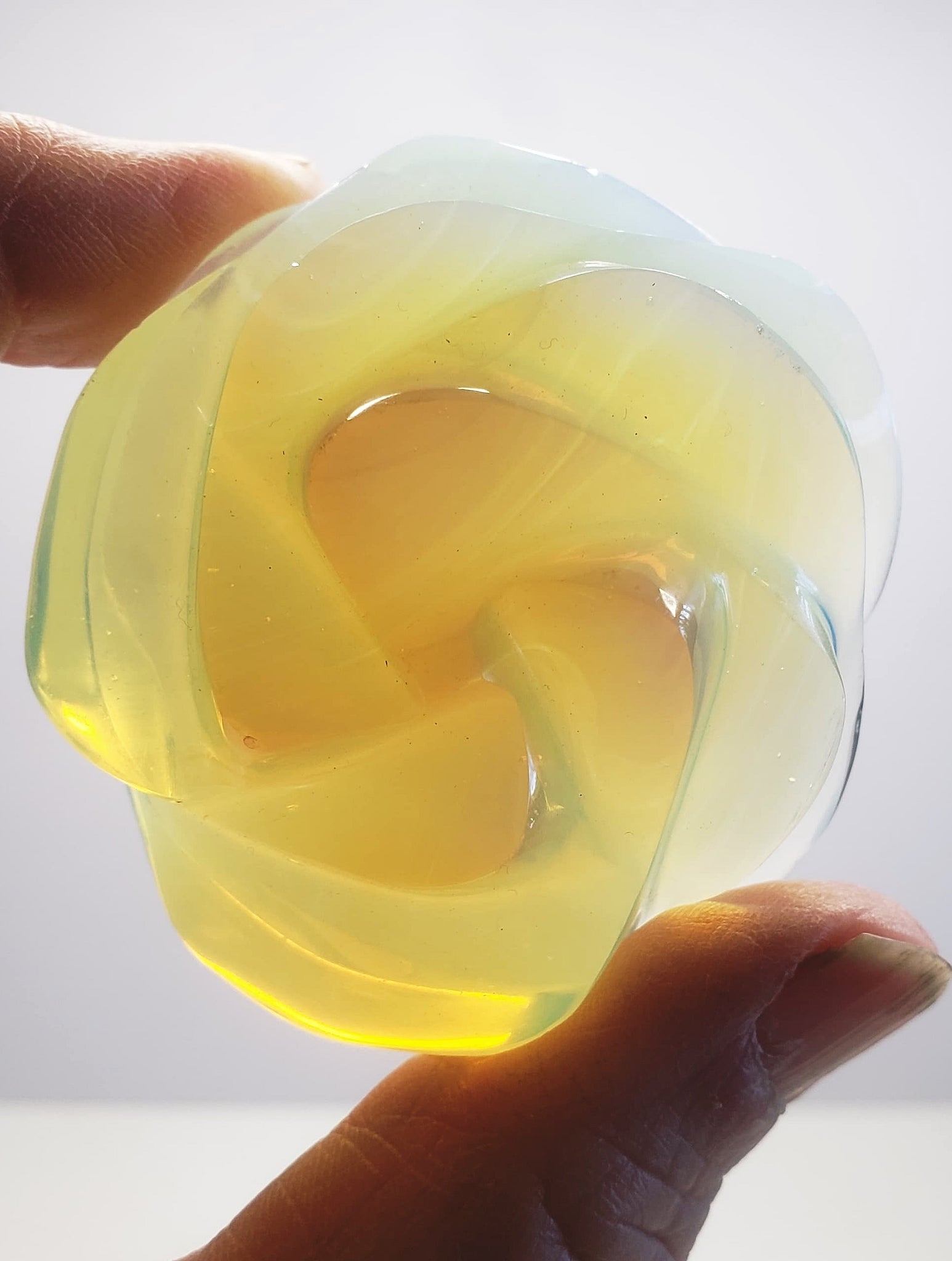 The Clear/white Opalescence Andara Crystal color allows for an easy bridge to higher energies aiding in anchoring the higher self. This color is particularly good for blocks, relieving the feeling of being stuck and gentle cleansing. It cleanses all bodies from issues regardless of where it originated. For example, if something has manifested on the physical it will not only help heal it on the physical but will cleanse and clear the emotional/mental bodies of where it might of originated for total resolution.